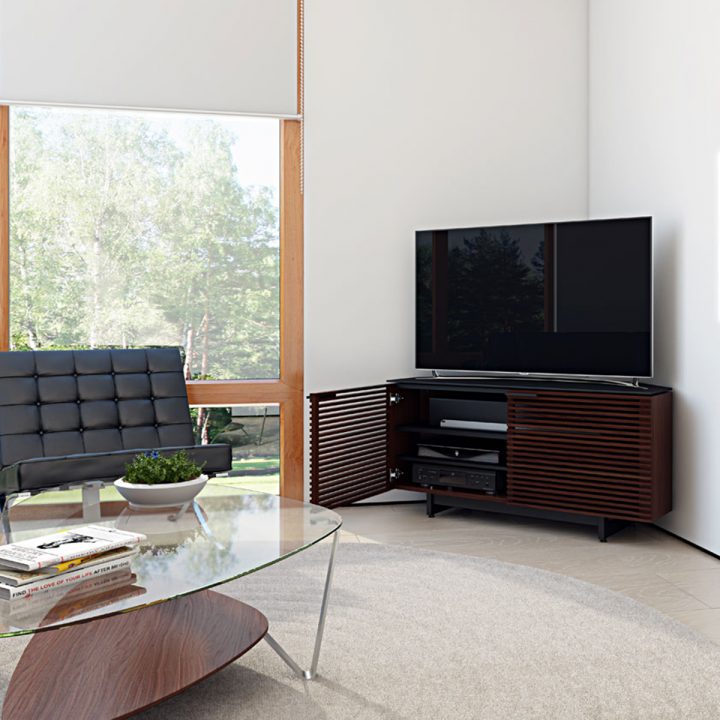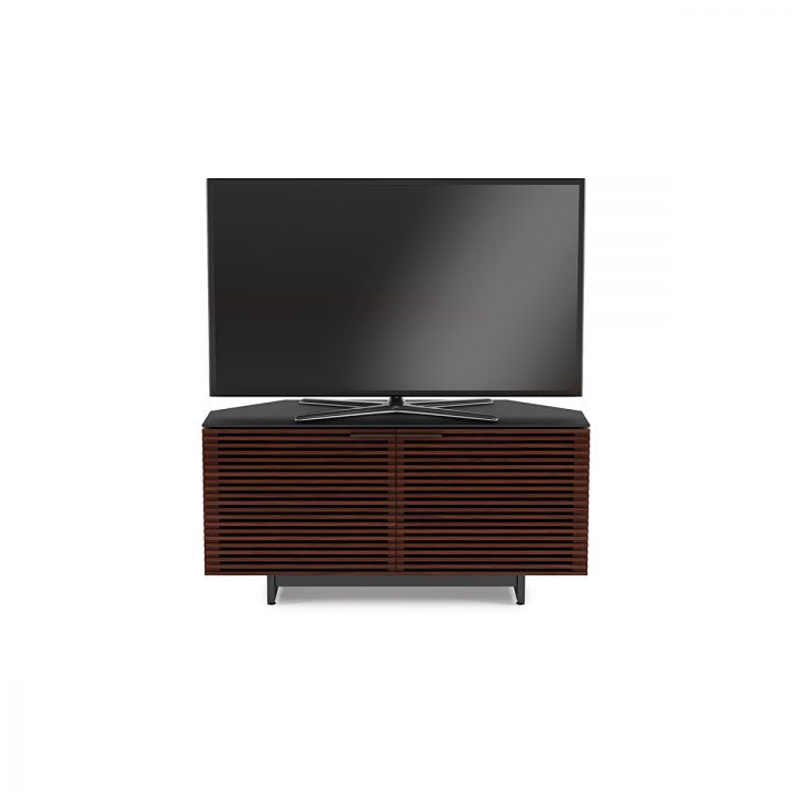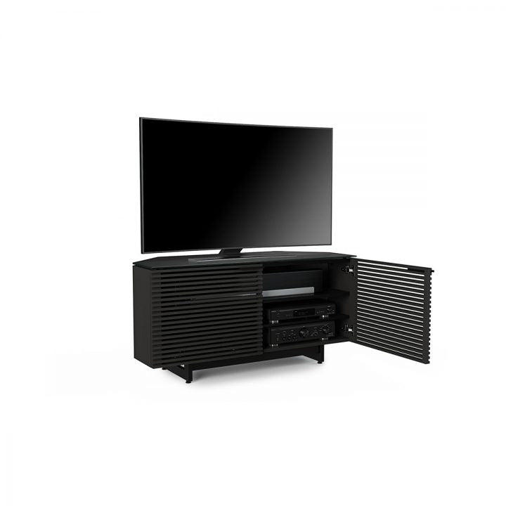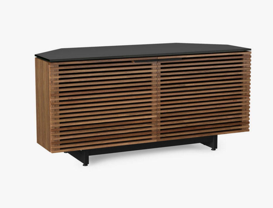 The Corridor Media Cabinet is the smaller version of BDI's lauded Corridor Collection. The iconic louvred doors give it a midcentury flair while allowing your electronics and remotes to interact without a hitch. The cutout, trapezoidal top allows the TV stand nestle neatly into a corner or against a wall. BDI functionality and style meet space-friendly composition with the Corridor Media Cabinet.