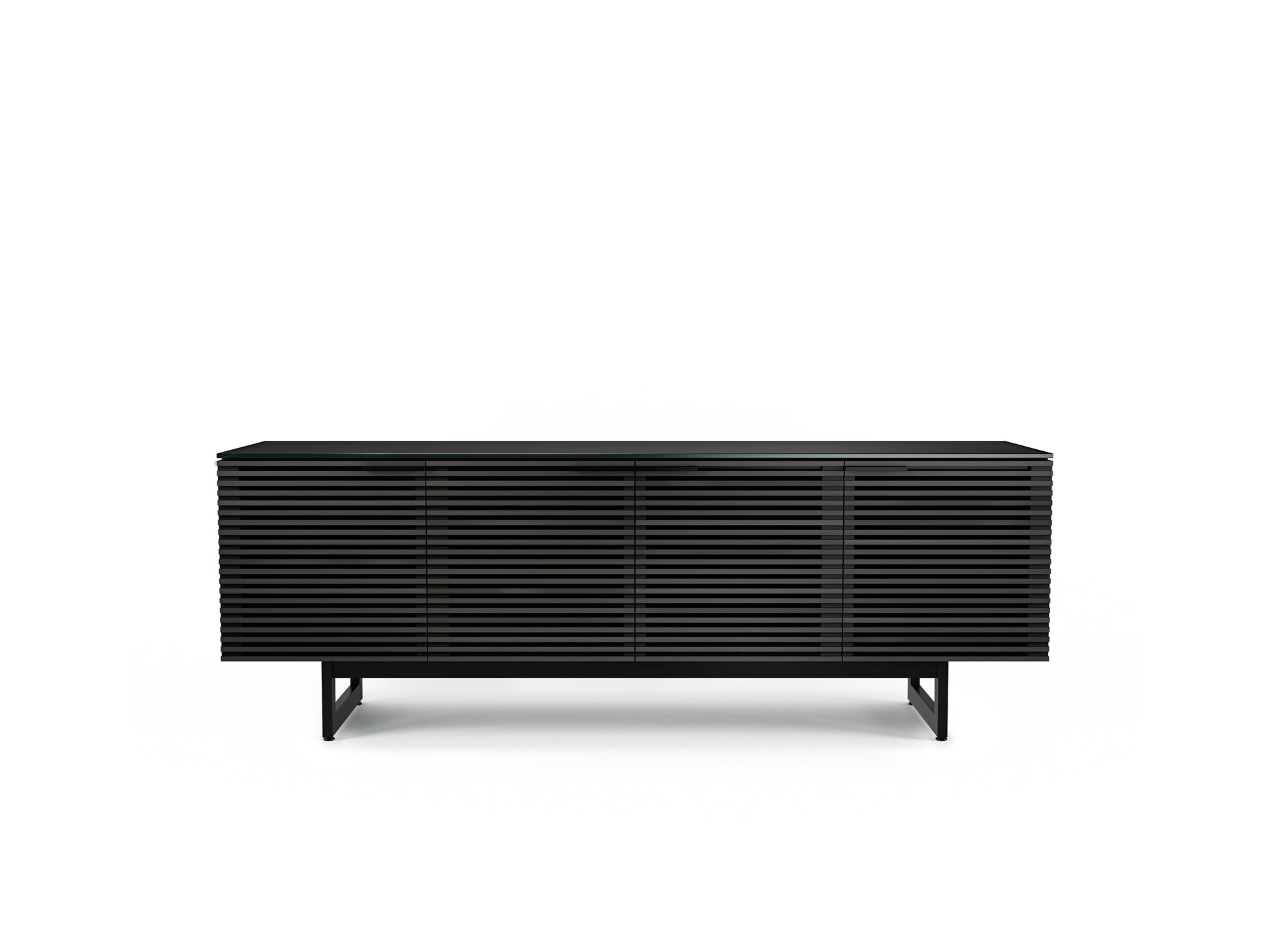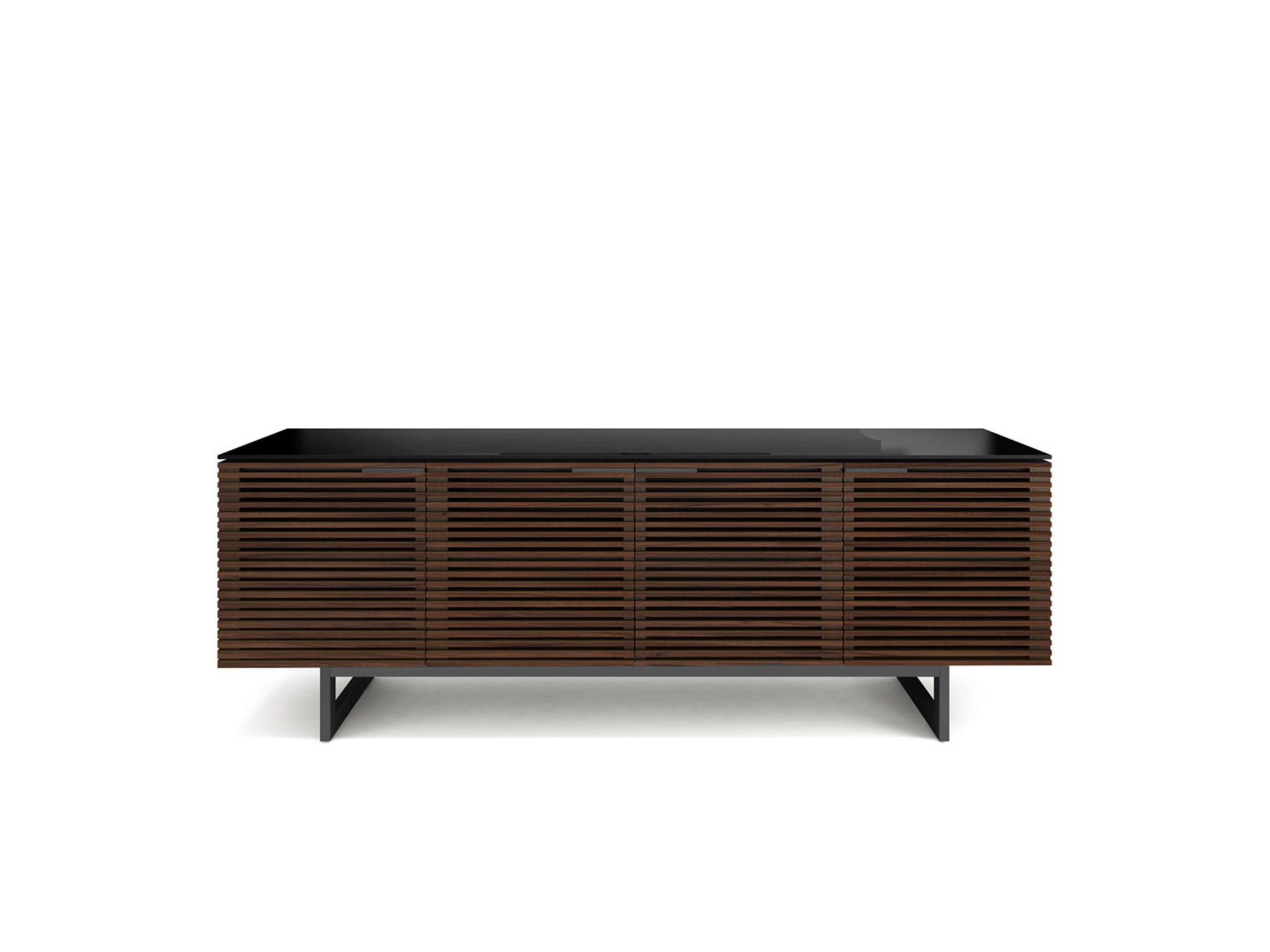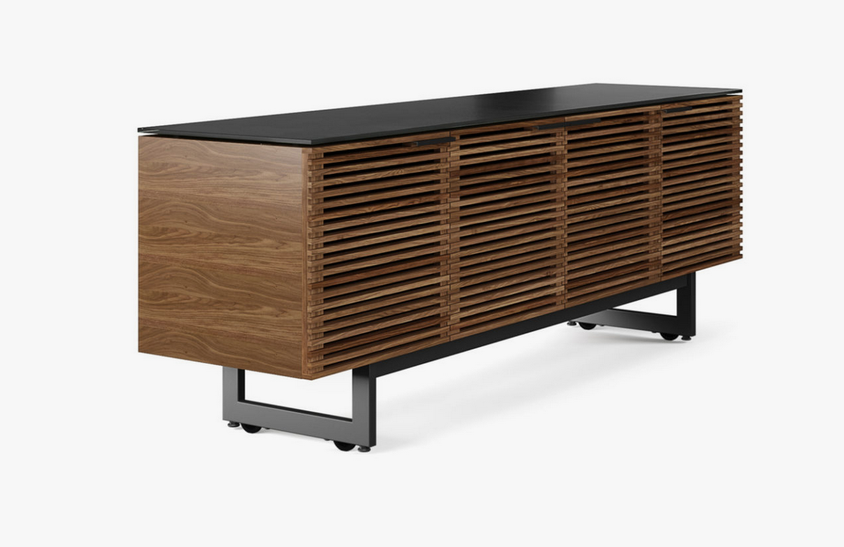 The Corridor Media Center by BDI lets you support your TV, house your media and accessories, and hide any unseemly mess and cables. Four louvered doors hide three cabinets with adjustable shelves, giving you plenty of space to store anything from speakers or a stereo to BluRay discs and DVDs. The doors' design allows the passage of sound and remote control signals while still keeping your things out of sight.